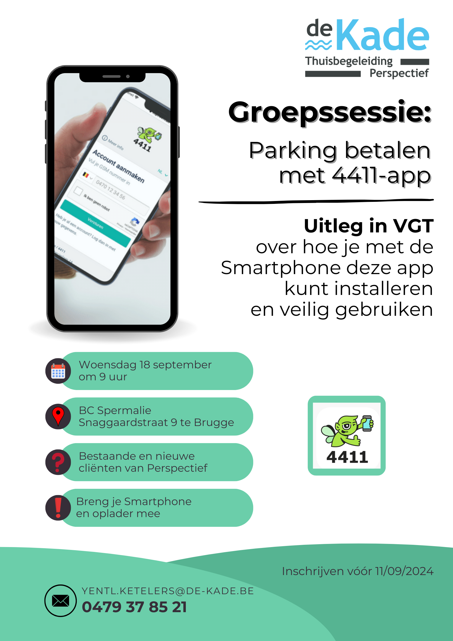 Op 18 september gaat de volgende groepssessie in VGT door met als thema: leren 4411 app gebruiken om parking te betalen.
