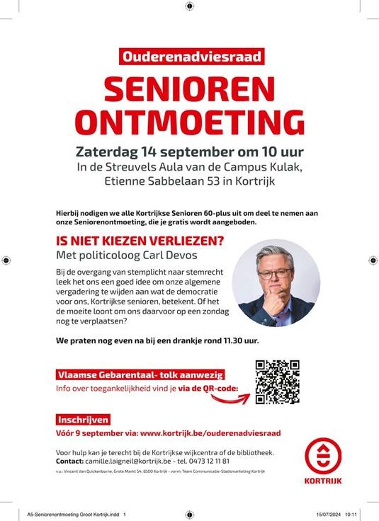 Op zaterdag 14 september om 10 uur organiseert de Ouderenadviesraad een gratis Seniorenontmoeting voor alle Kortrijkse senioren van 60 jaar en ouder. Deze bijeenkomst vindt plaats in de Streuvels Aula […]
