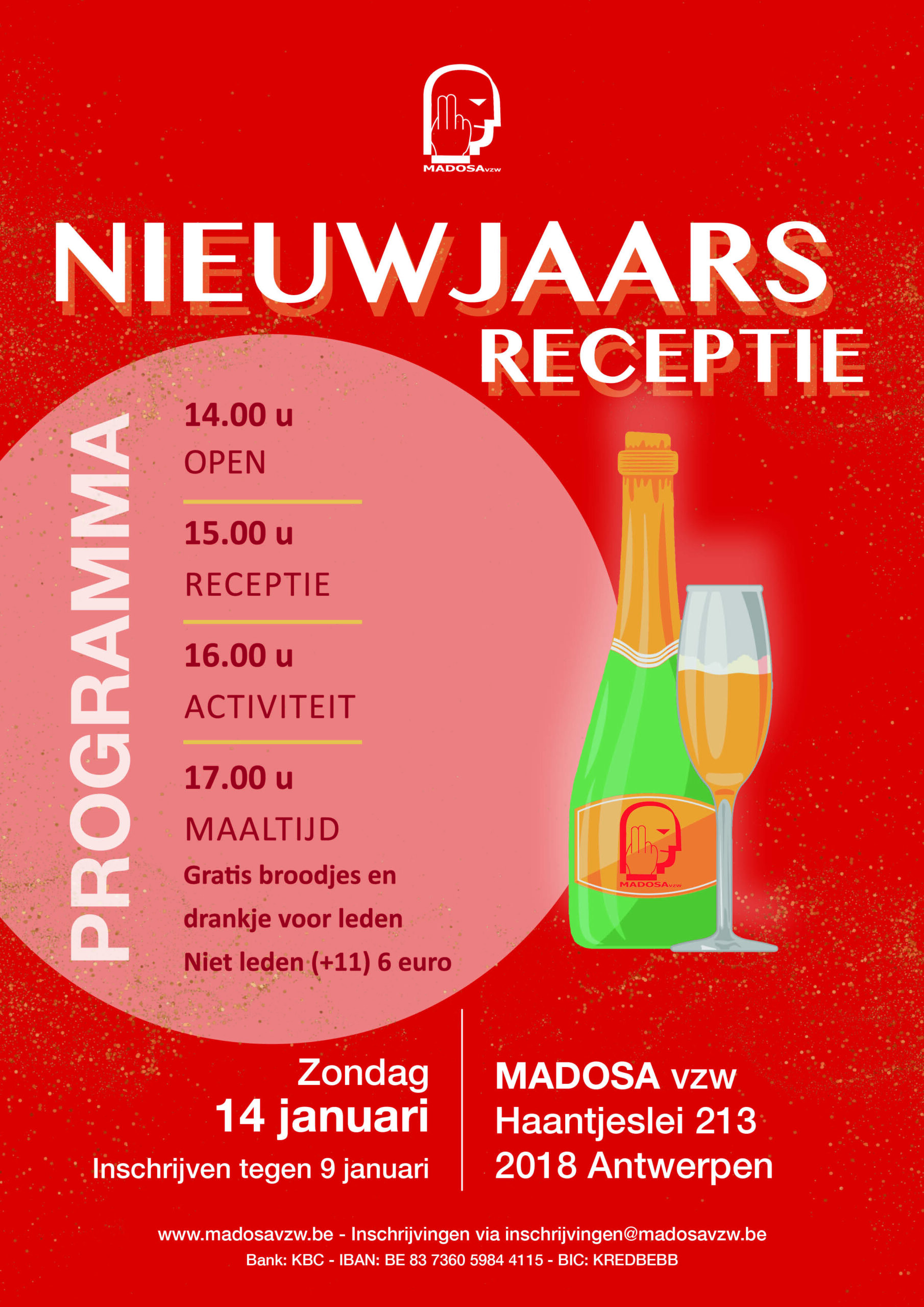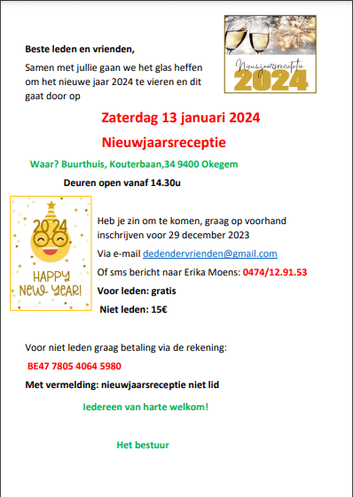 Nieuwjaarsreceptie voor alle leden van Nowedo. Ook niet-leden zijn welkom. Alle info op www.nowedo.be.