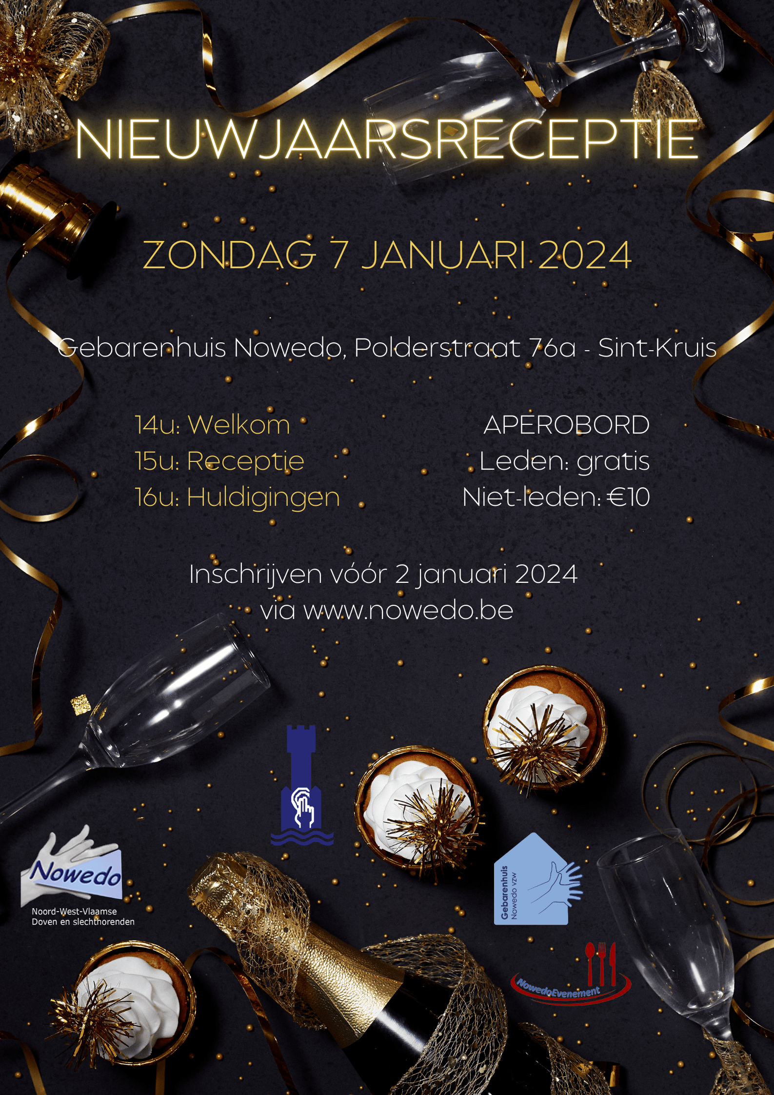 Gebarenhuis Nowedo Polderstraat 76A, Sint-KruisNieuwjaarsreceptie voor alle leden van Nowedo. Ook niet-leden zijn welkom. Alle info op www.nowedo.be.